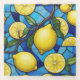 Yellow Lemons on Blue Stained Glass Art Coaster