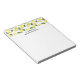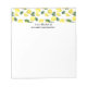A notepad with a cute pattern of yellow lemons with green leaves and fresh cut lemon slices along the top. Personalize with a name.