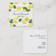 Square business cards with a cute pattern of yellow lemons with green leaves and fresh cut lemon slices.