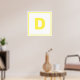 Yellow letter D alphabet on white background with yellow border. Help your little one learn the alphabet with this letter D design.