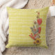 Subtle love words on a soft yellow ground with a cluster of flowers make this a sweet pillow to brighten a room.