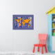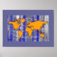 World map-themed wall decorative idea. A stylized yellow colour planisphere & blue vertical stripes behind