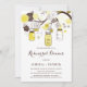 Invite guests to your event with this customizable rehearsal dinner invitation. It features yellow hanging mason jars with flowers and heartstrings. Personalize by adding your details. This mason jar invitation is perfect for any wedding theme or season. Matching items are available.