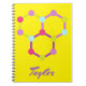 This yellow modern molecules, features a light yellow background with a molecules formed of colourful atoms. With your name written underneath in fun purple font, personalize yours today!