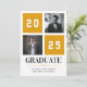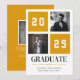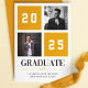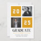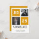 Celebrate your graduate's milestone with this yellow modern photo collage graduation announcement. This design features two photo placeholders and a bold, varsity layout with the year prominently displayed. Customize it with your graduate's name and high school. A stylish and contemporary way to announce their achievement!