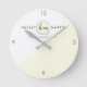 Modern professional simple customizable business wall clock with editable yellow monogram style logo. Great for anyone in the beauty or fashion industry. Great for freelance makeup artists, cosmetologist, estheticians, aestheticians, fashion stylists and more. Check out our fully matching other products. If you have a custom request - please send us a message or email: zazzle@cannydesign.com