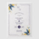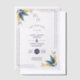 Yellow & Navy Blue Botanical Leaves Corner Initial Vellum Invitations