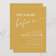 The "Minimalist Yellow The Night Before Rehearsal Dinner Invitation" offers a contemporary and refined choice for your pre-wedding event. With its vibrant yellow hue, this invitation exudes warmth and style. Embracing minimalist design elements, it features clean lines, elegant typography, and a focus on essential details. Perfect for couples seeking a chic and stylish invitation that sets the tone for an elegant rehearsal dinner.