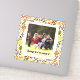 Yellow, orange and green floral border photo Sticker. A lovely design that includes a beautiful floral frame with a family photo. The frame is made of flowers in yellow and orange with olive green leaves. Your photo is placed in the centre. You can personalize it and change the text. Photography © Storytree Studios, Stanford, CA