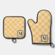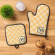 Yellow Orange Buffalo Plaid Gingham Monogrammed Oven Mitt & Pot Holder Set