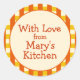 Yellow and orange chequered border lends a homey, country kitchen feel to any can or jar! Choose from two different sizes of round stickers, and customize the text. These would be great for pickles, salsa, or chutney, but you could also use them for non food related sticker needs such as decorating envelopes and packages, labelling items around the house, and a hundred other uses! See all our customizable labels!