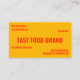 Yellow Orange Fast Food Burger Restaurant Business Card