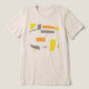 Geometric shapes are featured in yellow, orange, and light grey, forming a somewhat oval abstract art motif. Pictured here on an "oatmeal" Bella+Canvas Tri-blend t-shirt in Classic Printing, with other styles and colours available. Inspired by modern abstract art, as well as pop art and the MCM style, the design projects a bright and lively artistic quality for a versatile and polished addition to your casual and everyday wear (whether at home, socializing with friends, playing sports, or running about town). The shirt design as "wearable art" also expresses a sense of your individualized style, contributing to a feeling of being "together" and creative in your personal wardrobe choices.