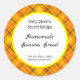 A retro plaid pattern of yellow and orange with smaller brown and green stripes on custom food or baking stickers with script and vintage block letters for your name or small business, recipe title and room for ingredients, weight, address, or more information. Customize it to change fonts, add or remove text, add your own logo or image and even save your design for later!
