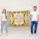 The beautiful pattern by HomeWare on this Throw Blanket was made from an original photograph of yellow orchids in the afternoon sunlight. The orchid flowers have pale yellow petals with red to purple centres. A dark green stem winds it's way up through the centre of the blooms. The pastel background is made up of shades of pink blending into pale green. A few light green leaves of an aloe plant can be seen in a corner. When the photo is combined to make the pattern, the floral design becomes a garden of orchids with the pink glow of the afternoon sun in the centre.