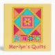 This notebook is great to hold your quilt photos, quild notes, projects, or information for a shop regarding clases or other information. Easy to customize with your name or business name. This quilt art based on original art and features favourite patchwork quilt blocks such as a log cabin, stars and pinwheel blocks. This design is original art created by Phyllis Dobbs in vibrant and dynamic colours on a yellow background. Customize for your use and to make it yours!