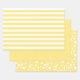 Three patterns in lemon yellow and white: basic stripes, polka dots and random spots.
