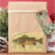 This print illustrates an artistic picture of a yellow perch fish. The background displays a vintage geographic map in light beige colours. The brown frame resembles old wood pattern with yellow-red flowers in the edges. A great addition to your fishing collection!