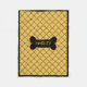 Yellow personalized doggie blanket, with a paw & bone background and large bone for your pooches name. This soft and cozy fleece blanket will keep your pup comfy all winter long. Matching pillow, pet bowls and placemats available. DoggyStyle Design Studio, celebrating human's best friend! © 2014 DoggyStyle Design Studio