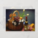 Yellow Picnic basket with wine, cheese, bread and Postcard