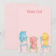 Customize your own Bears On Chairs Thank You Card! Input your thank you message into the template fields provided to create your personalized card!_x005F_x005F_x005F_x000D__x005F_x000D_ _x005F_x005F_x005F_x000D__x005F_x000D_ This colourfully cute illustration by David Walker is from the Candlewick Press title "Bears on Chairs" (written by Shirley Parenteau). Blue-and-white Calico Bear, bright pink Fuzzy Bear, and Yellow Bear have climbed up onto three chairs. The image displays the young bears' excitement and Walker's illustrations make each one look as soft and fluffy as can be. Your toddler will love these cute and playful bear friends.