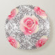 Yellow Pink Rose Print Round Pillow