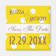 Yellow and white polka dots are the theme of this contemporary "Save the date" magnet. Customizable text includes a place for the happy couple's name and wedding date.