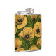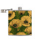 Yellow poppies on dark green hip flask