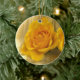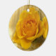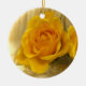 This lovely holiday ornament features a still life composition of an exquisite yellow rose on a beige background. The petals range in colour from pale yellow through gold to a deep orange.