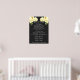 Wedding program sign with a vintage illustration of yellow flowers and greenery on a grey background.