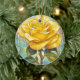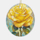 Beautiful memorial ornament with faux stained glass yellow rose with sky blue background. Customize the back with custom greeting, name and dates.