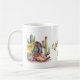 Pretty Texas souvenir mug with graphics of pretty colourful cowgirl boots, cactus and yellow roses. Text, on the front of the mug reads, Yellow Rose of Texas, and can be personalized to read what you want.