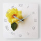 Yellow Rose On White Grey Script Roman wcm Square Wall Clock