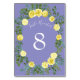 Yellow Rose & Purple Periwinkle Wedding Table Number