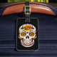 Yellow Rose Sugar Skull on Black Luggage Tag