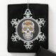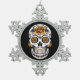 Yellow Rose Sugar Skull on Black Snowflake Pewter Christmas Ornament