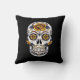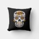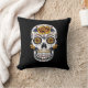 Yellow Rose Sugar Skull on Black Throw Pillow