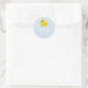 Round shaped birthday party Thank you sticker with a yellow rubber ducky . Personalize it with the details of your toddler's party . Great to seal favour bags .From the store of lumirala .