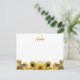 Yellow Rustic Sunflower Floral Script Monogram Note Card