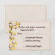 Wedding response card design featuring yellow sakura blossoms on parchment-looking background.