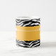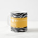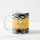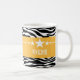 Trendy and modern Sassy Star Zebra Mug featuring a chic black and white zebra print background and a bold yellow border adorned with a fun star motif. This girly design may be customized with the personalized text of your choosing. Click "Customize It" to find more personalization options.