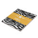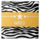 Trendy and modern Sassy Star Zebra Tile featuring a chic black and white zebra print background and a bold yellow border adorned with a fun star motif. This girly design may be customized with the personalized text of your choosing. Click "Customize It" to find more personalization options.
