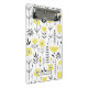 Whimsical and Scandinavian-inspired clipboard. It features black and yellow floral pattern. Personalize by adding your name or short phrase. This floral clipboard will be perfect as a personalized gift. Matching items are available.