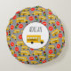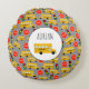 Yellow School Bus Stop Sign Traffic Lights Pattern Round Pillow