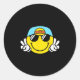 Yellow Smile Face Cute Checkered Peace Smiling Hap Classic Round Sticker