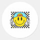 Yellow Smile Face Cute Checkered Peace Smiling Hap Classic Round Sticker