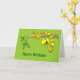 This reptile birthday card has a cute cartoon smiling snake image.  It's yellow and brown and curled in a tree branch, with its head hanging down and its fangs out.