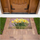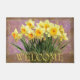 This 24" x 36" welcome mat features a lovely photo of yellow spring daffodils in full bloom with a rustic lavender background and the text "Welcome" below. Designed just for you by world renowned artist ©Tim Coffey.