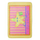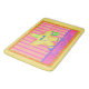 Have fun at thie beach with this colourful orange and yellow bath mat or rug to remind you of the beach. Great for decorating a kids room or bath. This art is great for both kids and adults in a whimsy art style. The whimsy starfish is yellow and is on a pink and orange stripe background and is surrounded by orange boeder with dots. The starfish has a smiling face and is wearing purple shoes and is holding a green bucket pail. The bottom border has the words "Fun in the Sun". The background around the art is yellow. This makes a great gift for a beach lover and is great for a beach home. This is created with original art by Phyllis Dobbs and is vibrant in the yellow, orange, and hot pink colours. Fully customizable for your enjoyment.