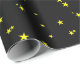 Yellow Stars on Black Gift Wrapping Paper